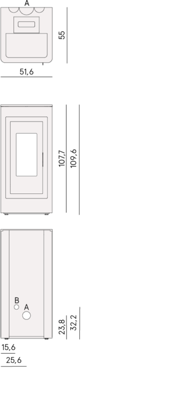 - Consumo Pellet: 0.70 – 2.5 Kg
